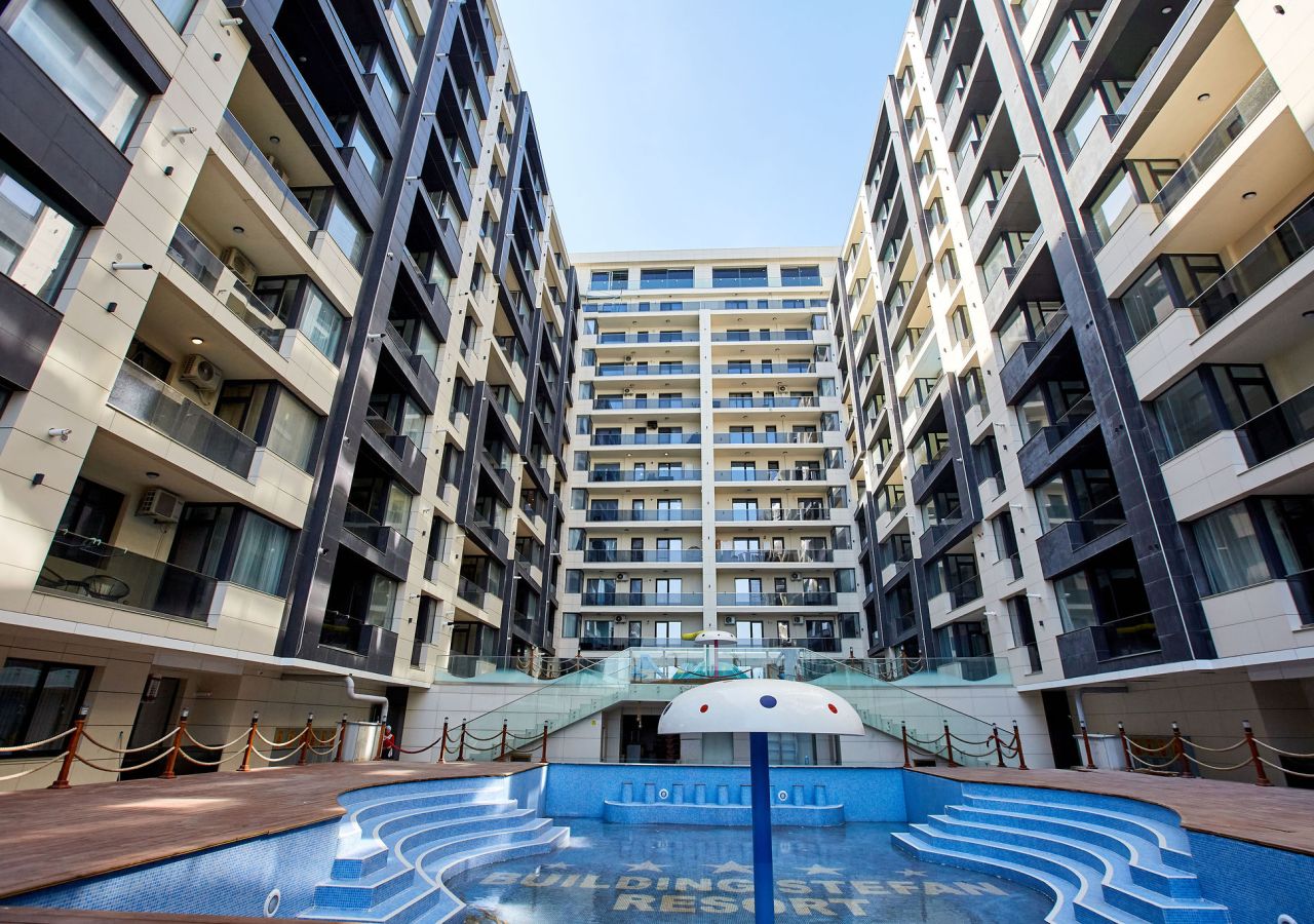 Complex Stefan Resort se află în Mamaia Nord, langa promenada si plaja. Distanta de la complex pana la plaja este de doar 2 minute de mers pe jos, astfel ca nu trebuie sa petreceti mult timp pe drumul catre mare, un avantaj preferat de majoritatea turistilor. In Complexul turistic Ștefan Resort vei găsi o varietate de facilități, inclusiv piscine( contracost ), plaje și restaurante. Este locul perfect pentru a te relaxa și a te bucura de o vacanță minunată într-un cadru pitoresc. Statiunea Mamaia Nord va ofera acces rapid la punctele de interes ale statiunii cum ar fi: restaurante cu specific diferit, baruri, cafenele, terase, gelaterii, magazine, farmacii etc. Unitățile din cadrul complexului sunt prevăzute cu aer condiționat, TV cu ecran plat, baie privată cu duș și halate de baie si balcon cu vedere frontala la mare . Designul este elegant si luxos , facand parte din cele mai exclusiviste apartamente din resort, dotate cu tot ce este necesar. Cele doua apartamente , Ra Luxury Suite si Sun Smile se remarca prin privelistile frontale si panoramice catre mare din balcon dar si din sufragerie . Ra Luxury Suite este cu 3 camere avand o capacitate de 6 persoane , iar Sun Smile cu 2 camere pentru 4 persoane. In incinta complexului Stefan se afla o piscina exterioara, accesul fiind contra cost.